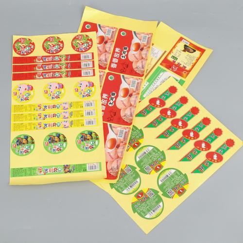 食品不干膠標簽分為兩種形式:一種是把文字、圖形、符號、印制或壓印在食品的包裝盒、袋、瓶、罐或其它包裝容器上;一種是單獨印制紙簽,塑料簽或其它制品簽,粘貼在食品容器上。